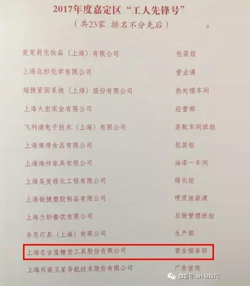 · 名古屋營業(yè)銷售部榮獲嘉定區(qū)“工人先鋒號”稱號!